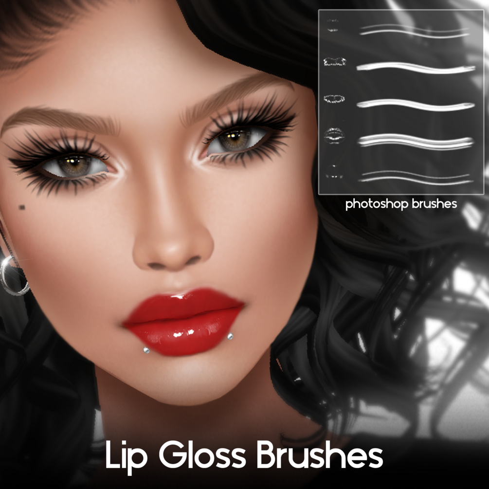 5 Customized Photoshop (.abr) brushes to turn any plain or matte lip into a beautiful shiny gloss.